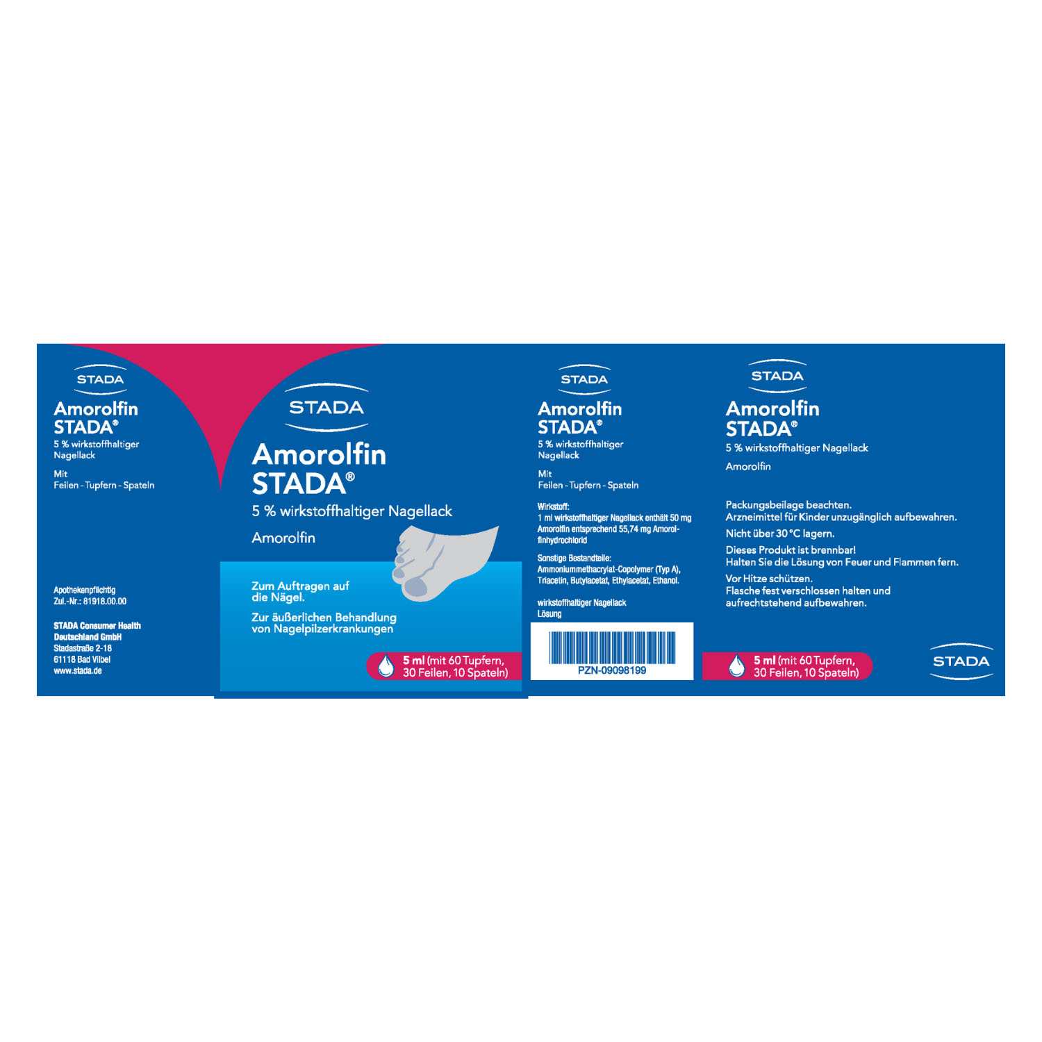 Amorolfin STADA® ist ein Antimykotikum (Mittel gegen Pilzerkrankung), welches eine Vielzahl verschiedener Pilze abtötet, die Nagelinfektionen verursachen können und die Ursache für verfärbte, dicke oder brüchige Nägel sind.