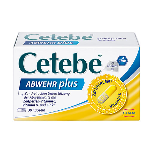 Cetebe® ABWEHR plus enthält 300 mg ZEITPERLEN® Vitamin C, 10 μg Vitamin D3 und 10 mg Zink.