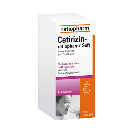 Cetirizin-ratiopharm® Saft mit dem WirkstoffCetirizin kann die allergischen Symptome schnell lindern, indem es die Histamin-Rezeptoren blockiert. Die Wirkung tritt rasch ein und hält bis zu 24 Stunden an. Der Saft ist bereits für Kinder ab 2 Jahren geeignet und schmeckt nach Banane. Die flüssige Form erleichtert die Einnahme auch für Personen mit Schluckbeschwerden. Zudem ist der Saft frei von Zucker und Laktose.