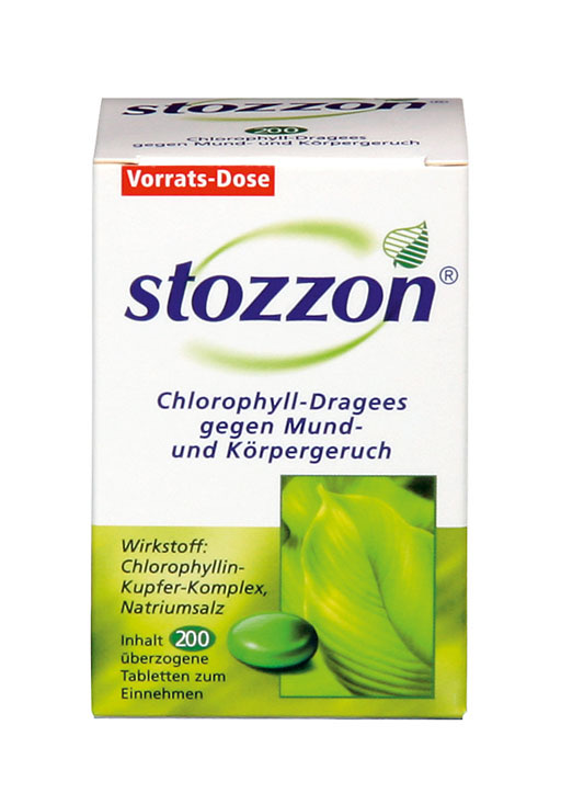 Viele Menschen leiden gelegentlich unter Mund- und Körpergeruch. Das Problem: Man nimmt den unangenehmen Geruch zwar bei anderen, nicht aber bei sich selbst wahr. Die Ursachen für Mund- und Körpergeruch sind vielfältig. So können Stoffwechselerkrankungen, Magen- und Darmstörungen, Entzündungen im Mund- und Rachenraum sowie andere Erkrankungen der Auslöser sein - ebenso wie Stress und seelische Belastung. Und jeder, der gern Knoblauch oder Zwiebeln isst, weiß, dass dies am nächsten Tag zu einer erheblichen Geruchsbelästigung der Mitmenschen führt. Was wenig bekannt ist: Auch Diäten oder unausgewogene Ernährung können durch den dadurch bedingten veränderten Stoffwechsel zu Mundgeruch führen. Der in Stozzon enthaltene Wirkstoff Chlorophyllin hat geruchsneutralisierende Eigenschaften. Der Wirkstoff aus dem natürlichen Blattgrün kann die Aktivität bestimmter eiweiß-spaltender Enzyme vermindern und auf diesem Wege die Bildung übler Gerüche hemmen. So können stozzon Chlorophyll-Dragees unangenehme Gerüche von innen heraus verhindern, noch bevor sie entstehen.